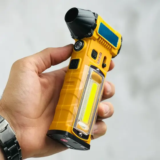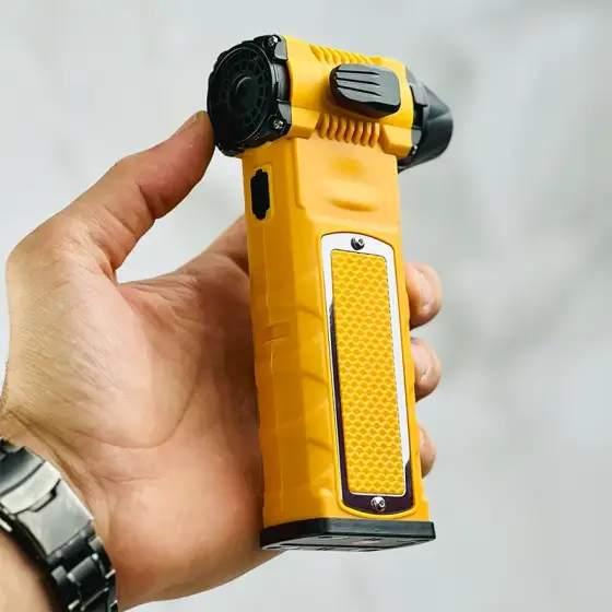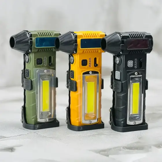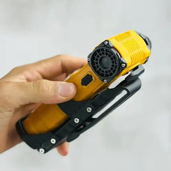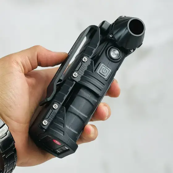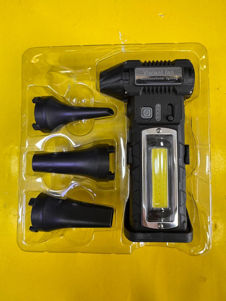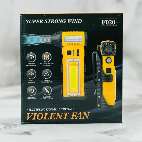 ابعاد: 14.5×9.5×4.5 سانتیمتر جنس بدنه: پلاستیک ABS باتری: 8000 میلی آمپرسرعت موثر: 110000 دور در دقیقه فن دستی وایولنت فن F020 یک جت فن پرقدرت چندکاره است که کاربردهای زیادی مثل گردگیری خانه و روی میز و ماشین و داخل موتور و …، روشن کردن زغال، جمع کردن برگ های خشک، روشن کردن آتش و … دارد. همچنین دو عدد چراغ قوی دارد که می توانید در کمپ و … از آن برای روشنایی استفاده کنید. یک چراغ ال ای دی پرنور که دارای چهار حالت 1. پرنور 2. کم نور 3. قرمز و 4. قرمز چشمک زن در بغل دستگاه و یک چراغ کوچکتر در جلوی دستگاه که سه حالت 1. پرنور 2. کم نور و 3. چشمک زن دارد. این جت فن دارای 4 سری مختلف است که حالت های مختلف باددهی ایجاد میکند و برای جاهای مختلف کاربردهای گوناگونی دارد. در زیر دستگاه نیز 4 عدد مگنت کار شده که قابلیت چسبیدن به اشیای فلزی را دارد و به هیچ وجه نمی افتد. موتور براشلس این دستگاه باعث شده عمر بالایی داشته باشد، همچنین یک جریان هوا به سمت پایین دستگاه هدایت شده تا باد به این قسمت برسد و خنک کاری انجام شود.