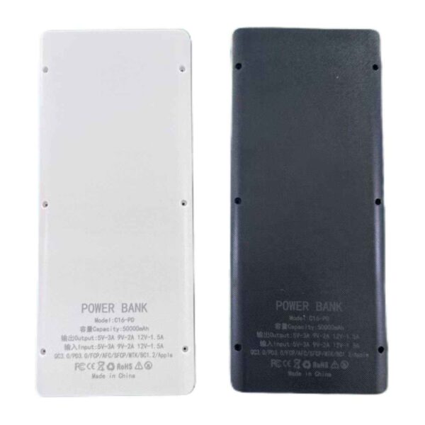 کیس و ماژول پاوربانک فنری ۱۸۶۵۰ ظرفیت ۵۰ هزار میلیآمپر با نمایشگر – خروجی 18 وات مدل C16‑PDکیس و ماژول حرفهای مخصوص ساخت پاوربانکهای چندمنظورهی فست شارژ. طراحی ماژولار، بدون نیاز به لحیمکاریمکانیزم فنری دقیق، نصب و تعویض سریع باتریهای 18650 را در چند ثانیه ممکن میسازد.سلولها بدون لحیمکاری و فقط با فشار فنر در جای خود محکم میشوند.————————————————-ظرفیت و مشخصات فنی مدل: C16‑PDولتاژ کاری: 3.7Vظرفیت اسمی: 50000mAhتوان خروجی کلی: تا 18 وات (Fast Charge)توان چراغ LED: 5 وات استاندارد اجرایی: GB/35590‑2017پشتیبانی از پروتکلهای فست شارژ: QC3.0 / PD3.0 / FCP / AFC / SFCP / MTK / BC1.2 / Apple Fast Chargingپورتها و مشخصات دقیق ورودی/خروجی ورودیها:Type‑C: 5V⎓3A / 9V⎓2A / 12V⎓1.5AMicro USB: 5V⎓3A / 9V⎓2A / 12V⎓1.5A خروجیها:USB‑A1: 5V⎓3AUSB‑A2: 9V⎓2A / 12V⎓1.5AType‑C: 9V⎓2A / 12V⎓1.5A نکته مهم :این محصول شامل کیس و برد پاوربانک (فاقد باتری) است.