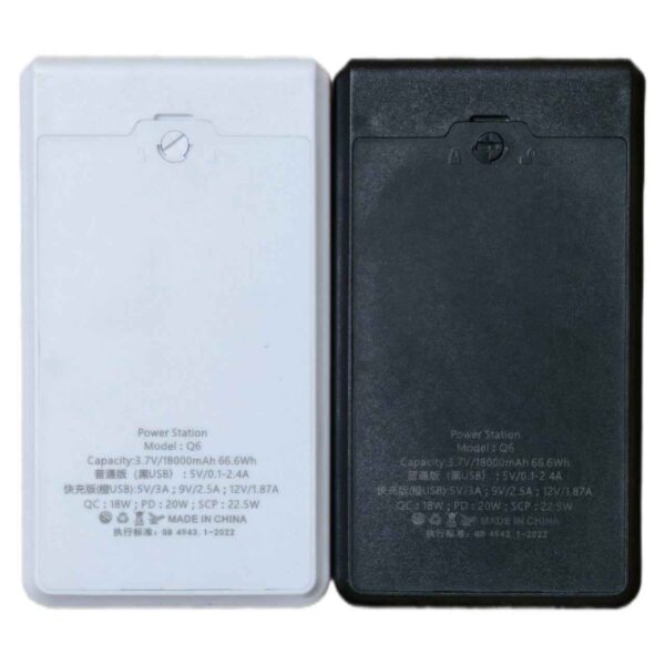 کیس و ماژول پاوربانک فنری ۱۸۶۵۰ ظرفیت ۱۸ هزار میلیآمپر با نمایشگر – خروجی ۲۲.۵ وات مدل Q6کیس فستشارژ جمعوجور با فرم مینیمال، چراغقوه کناری و بدنهی صنعتی مات.طراحی ماژولار فنری با دقت خطیمحفظه فنری 6 سلولی برای نصب سریع و بیدردسر باتریهای 18650.جایگذاری کاملاً تراز، بدون نیاز به لحیمکاری و مناسب استفاده روزمره سبک و سیار.ظرفیت و مشخصات فنیمدل: Q6ولتاژ کاری: 3.7Vظرفیت اسمی: 18000mAhتوان خروجی کلی: تا 22.5 وات (Fast Charge)استاندارد اجرایی: GB 4943.1‑2022پروتکلهای پشتیبانیشده: QC / PD / SCP / AFC / FCPپورتها و مشخصات ورودی/خروجیورودیها:Type‑C: 5V⎓3A / 9V⎓2.5A / 12V⎓1.87AMicro USB: 5V⎓2A خروجیها:USB‑A1 (نارنجی – فست): 5V⎓3A / 9V⎓2.5A / 12V⎓1.87AUSB‑A2 (نارنجی – فست): 5V⎓3A / 9V⎓2.5A / 12V⎓1.87AType‑C (فست): 5V⎓3A / 9V⎓2.5A / 12V⎓1.87A نکته مهم این محصول شامل کیس و مدار پاوربانک (فاقد باتری) است.
