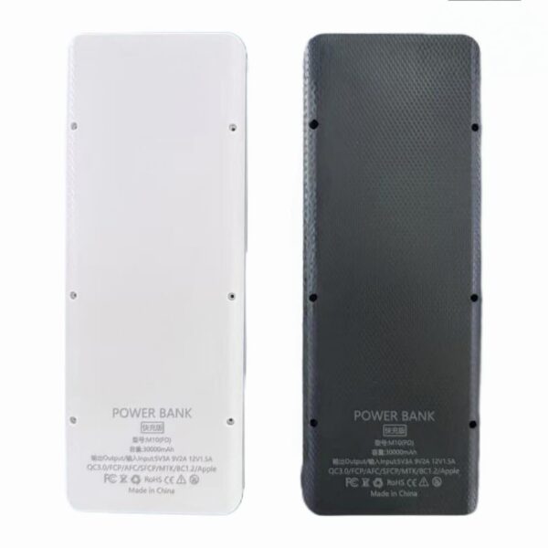 کیس و ماژول پاوربانک فنری ۱۸۶۵۰ ظرفیت ۳۰ هزار میلیآمپر با نمایشگر – خروجی 18 وات مدل M10‑PDکیس و ماژول فست شارژ برای ساخت پاوربانکهای سبک و حرفهای با طراحی صنعتی. طراحی ماژولار، بدون نیاز به لحیمکاریمکانیزم فنری با دقت بالا تعبیه شده تا باتریهای 18650 بدون هیچ ابزار یا سیمکشی در جای خود نصب شوند.تمامی سلولها بهصورت مجزا فیکس میشوند و تعویض آنها در چند ثانیه انجام میگیرد.——————————————–ظرفیت و مشخصات فنیمدل: M10‑PDولتاژ کاری: 3.7Vظرفیت اسمی: 30000mAhتوان خروجی کلی: تا 18 وات (Fast Charge)استاندارد اجرایی: GB/35590‑2017پشتیبانی از پروتکلهای شارژ سریع: QC3.0 / FCP / AFC / SFCP / MTK / BC1.2 / Apple Fast Chargingپورتها و مشخصات دقیق ورودی/خروجیورودیها:Type‑C: 5V⎓3A / 9V⎓2A / 12V⎓1.5AMicro USB: 5V⎓3A / 9V⎓2A / 12V⎓1.5A